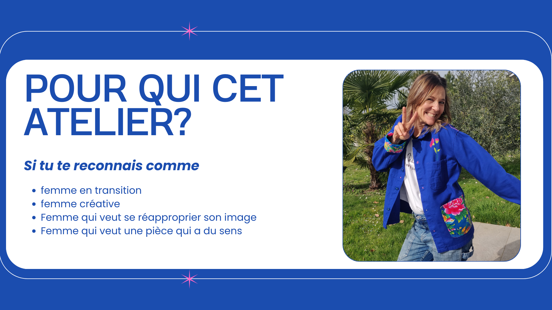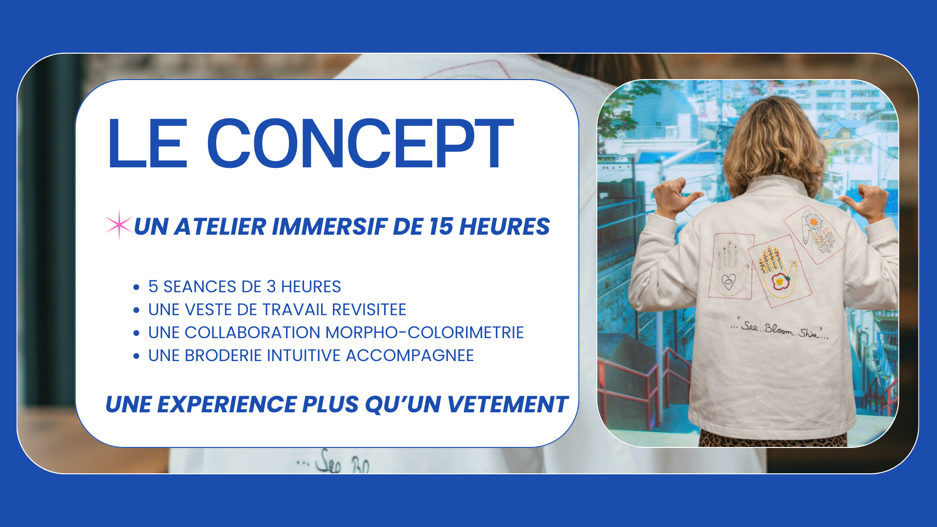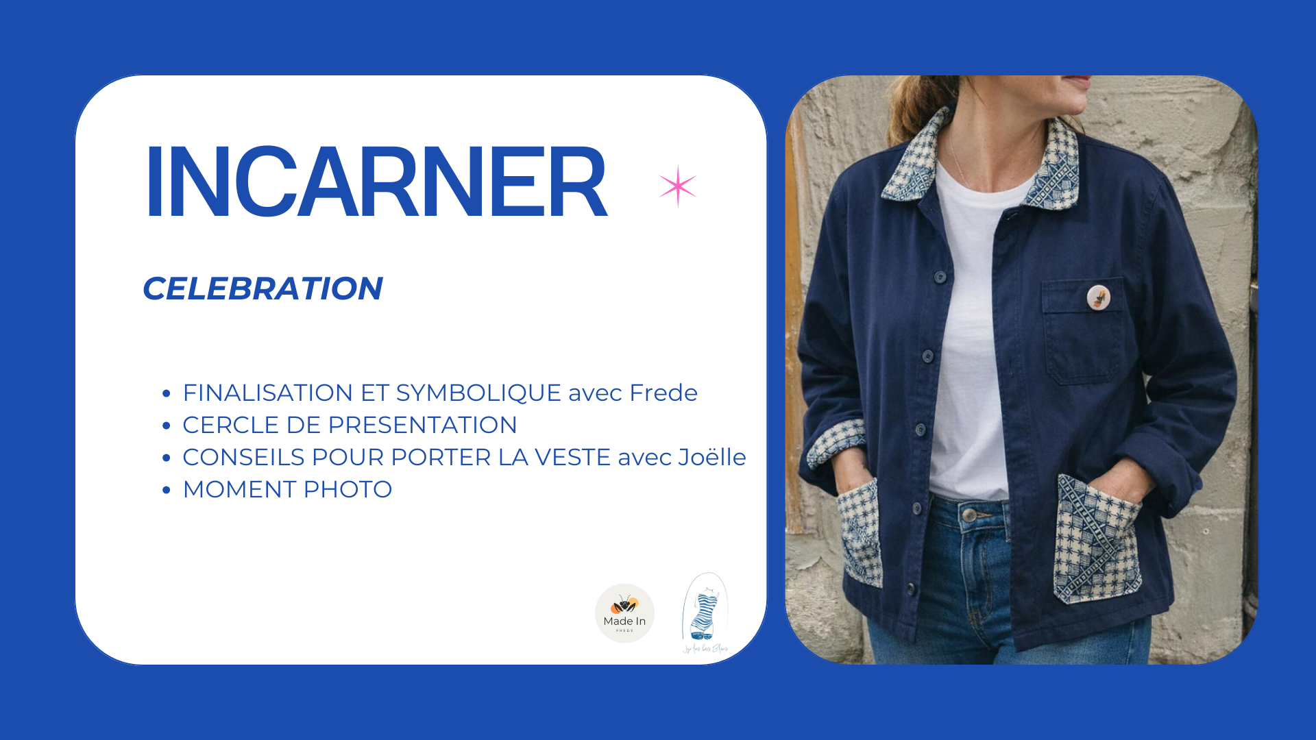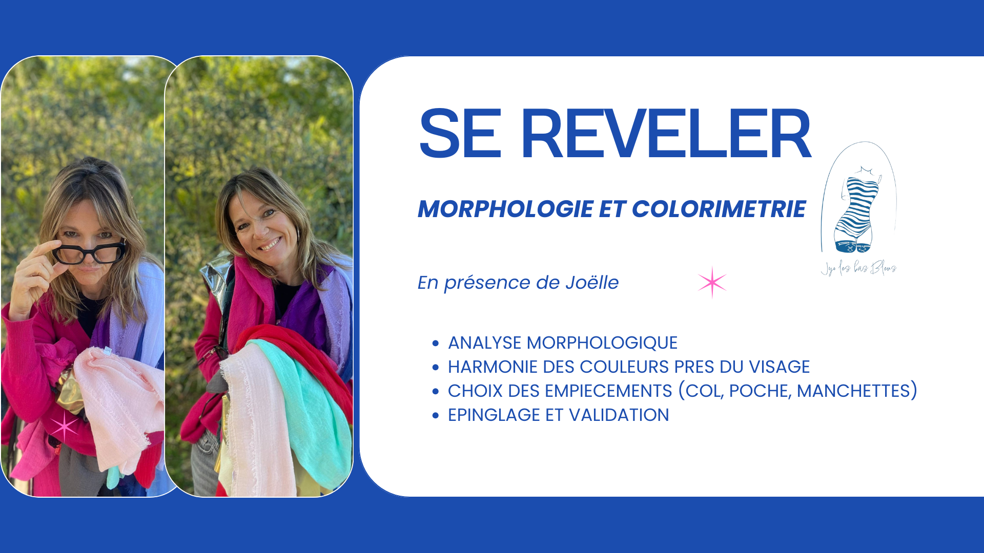 Avec cette MASTERCLASS, je permets à chaque femme d’incarner leur émancipation et leur singularité à travers le textile, et de raconter leur histoire. Et j’ai la chance de collaborer avec une femme exceptionnelle qui partage également mes valeurs. Joelle (jojo-les-bas-bleus), travaille la colorimétrie et la morphologie de la femme.