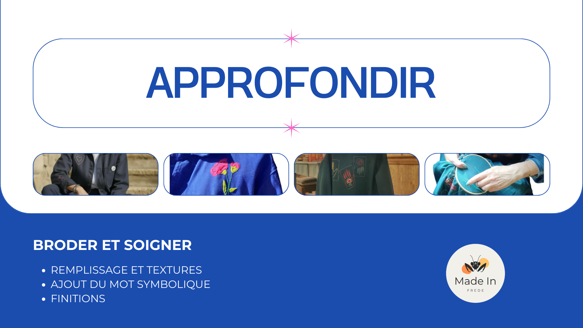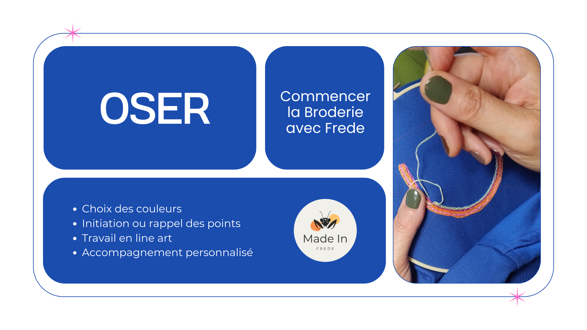 Une aventure textile où tu deviens la « maitresse » de cérémonie de ton histoire brodée.